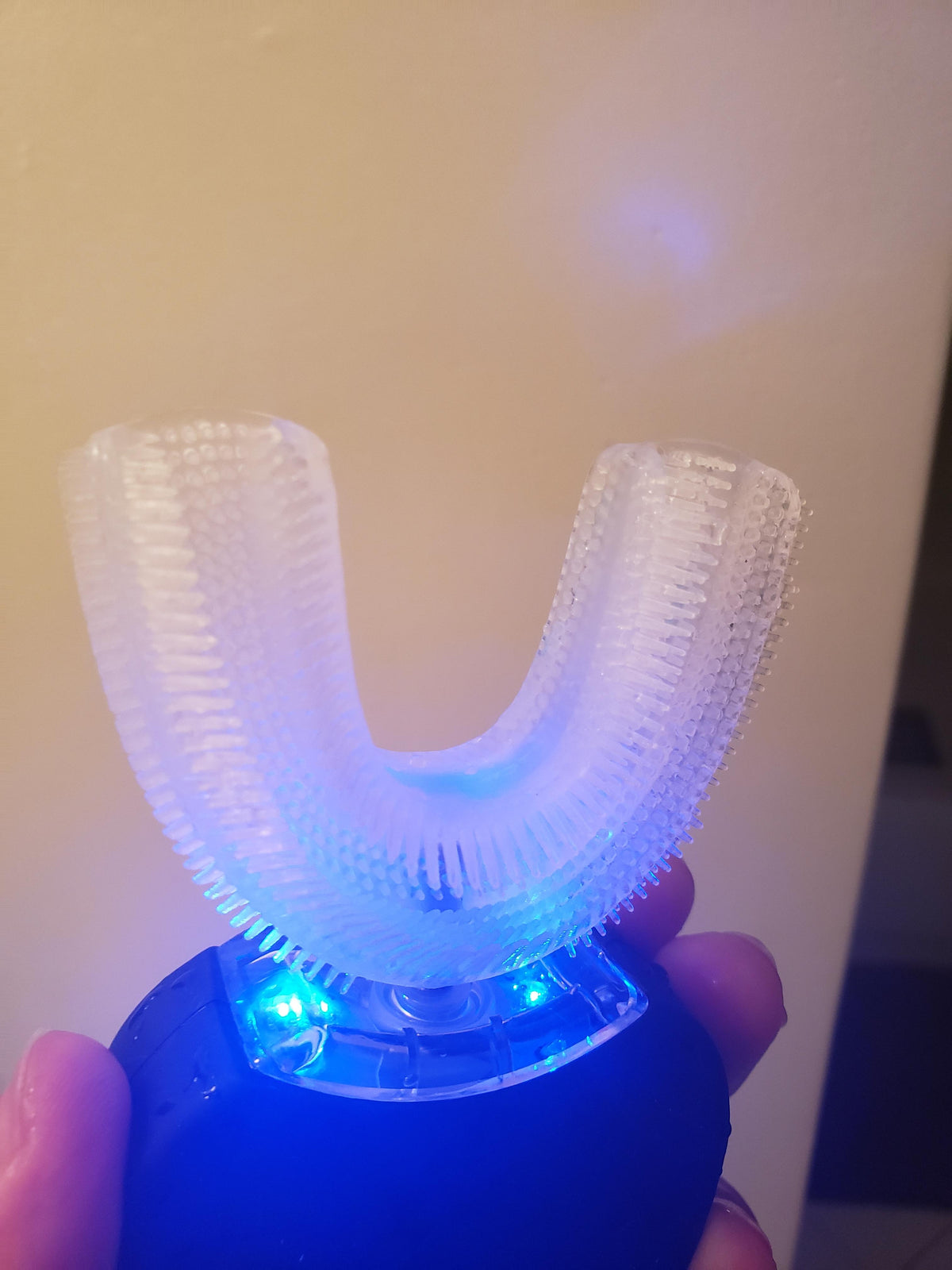 Answer 1: The U-shaped design allows for a 360-degree clean, reaching every corner of your mouth simultaneously. Its unique shape conforms to the structure of your mouth, ensuring that all teeth are effectively brushed at once, providing comprehensive coverage that traditional brushes can't match.