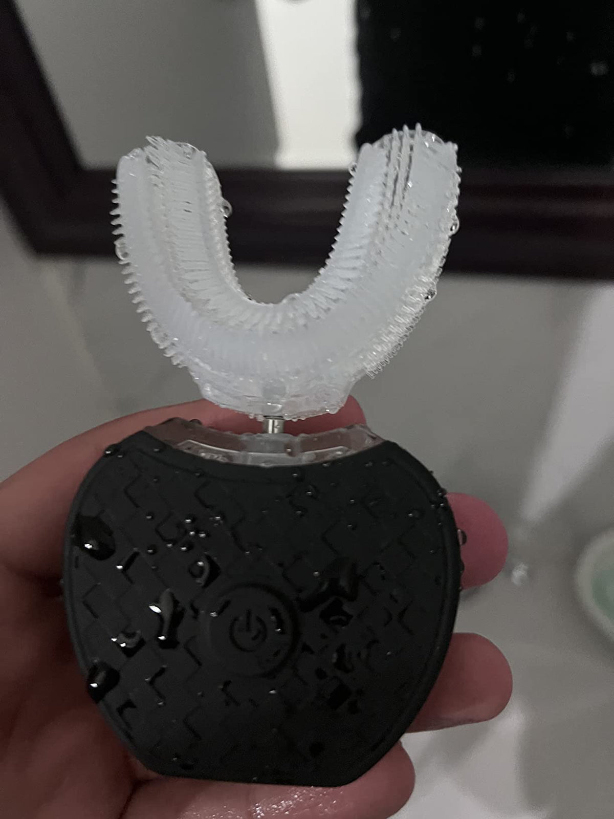 Answer 1: The U-shaped design allows for a 360-degree clean, reaching every corner of your mouth simultaneously. Its unique shape conforms to the structure of your mouth, ensuring that all teeth are effectively brushed at once, providing comprehensive coverage that traditional brushes can't match.